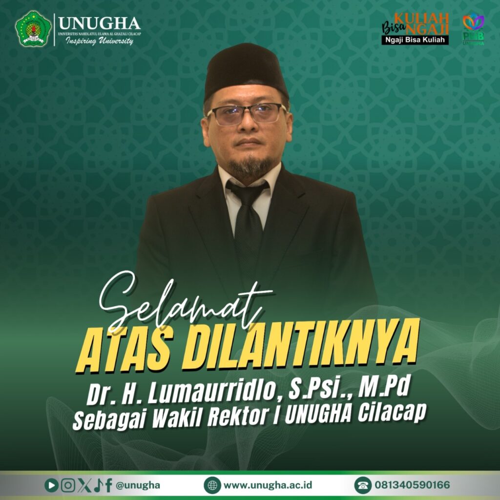 Cilacap, [ 31 Desember 2024] – Universitas Nahdlatul Ulama Al Ghazali (UNUGHA) Cilacap mengakhiri tahun 2024 dengan kabar gembira melalui pelantikan 12 pejabat baru yang akan mengemban amanah di berbagai posisi strategis di lingkungan kampus. Acara pelantikan yang berlangsung khidmat dan penuh harapan ini dilaksanakan pada hari Selasa, 31 Desember 2024, bertempat di Aula 1 Gedung Al Ghozali 2 UNUGHA Cilacap.