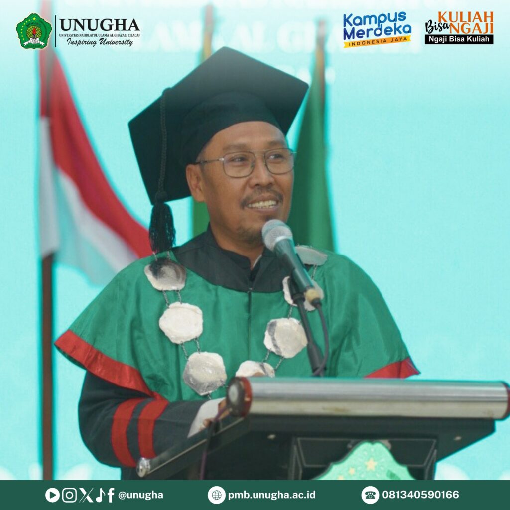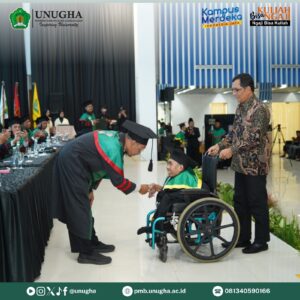 “Alhamdulillah hari ini anda mempunyai hal tersebut, karena kalau kalian tidak punya semangat juang tinggi, maka anda tidak akan menjadi sarjana,” kata sosok Doktor yang belum lama resmi menjabat sebagai Rektor UNUGHA ini.